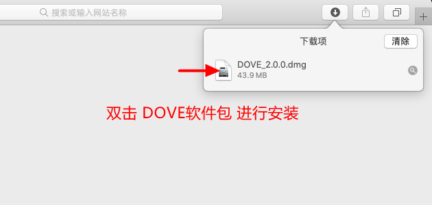 第1步:下载好客户端后,双击安装 - DOVE-2.dmg软件包 (如图)