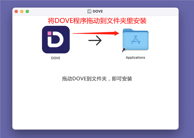第2步:将DOVE程序拖动到文件夹里安装(注意:一定要安装进应用程序)
